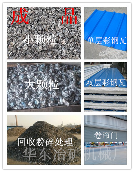金屬彩鋼瓦破碎粉碎后的物料光亮干凈,便于運(yùn)輸,減少了運(yùn)輸成本,鋼廠煉鋼時(shí)收得率提高,經(jīng)破碎粉碎后的廢金屬材料,銷(xiāo)路很好,利潤(rùn)空間提高,練出的鋼水與投入的廢鋼比例高(產(chǎn)出比高),爐內(nèi)的化學(xué)成分穩(wěn)定、受熱均勻、鋼水重磷、硫含量低、加料密度增加,加料次數(shù)減少,爐內(nèi)耐火材料襯里壽命延長(zhǎng),冶煉時(shí)空氣污染減少、操作容易、耗能降低、利潤(rùn)空間大。